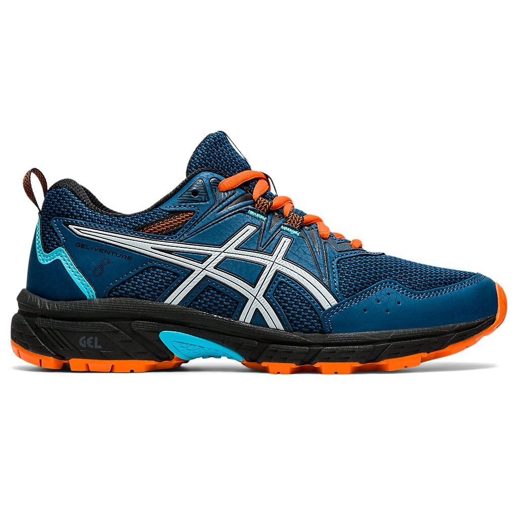 The Gel-Venture 8 GS draws inspiration from the Asics performance trail running offerings, like the Gel-Fuji Trabuco 8's upper and tooling. This GS (Grade School) offering is a kid's specific style that's designed to help promote outdoor protection, featuring a layered stitch down construction and reinforced toe paneling for excellent comfort.
