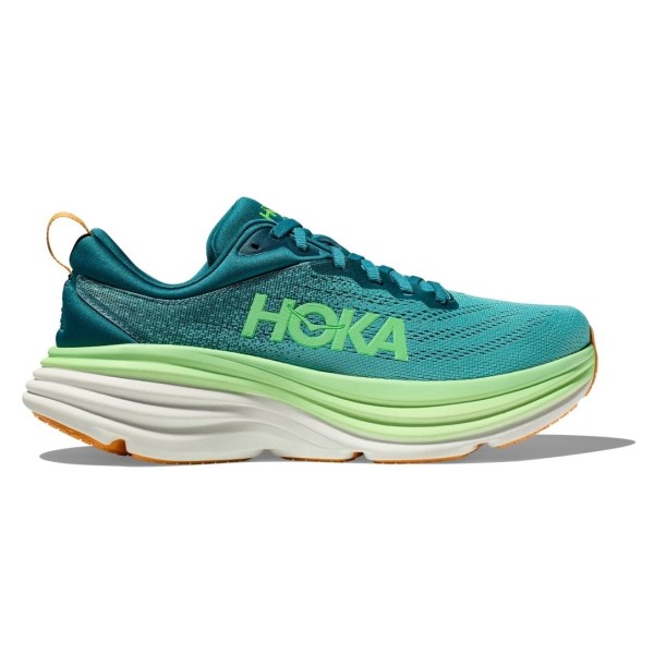 The Hoka Bondi 8 provides protection from the ground up as the ideal running shoe for everyday athletes that spend hours on their feet. The high abrasion rubber outsole provides road-ready traction and durability to flow into your stride.