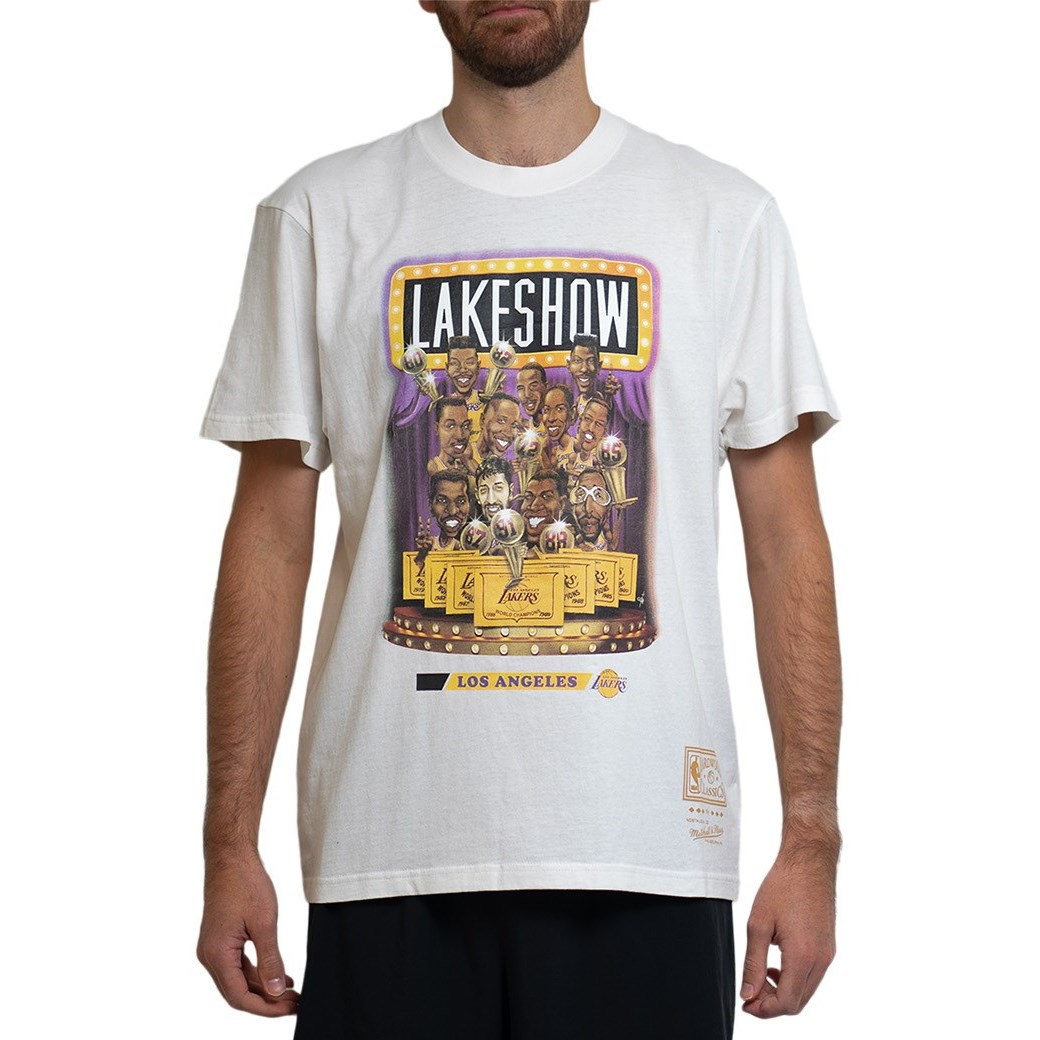 The Mitchell & Ness Los Angeles Lakers Cartoon Series men’s basketball t-shirt pays tribute to one of the most successful teams of the NBA.