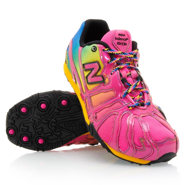 New Balance 230 is a lightweight racing spike for kids featuring a 6 rubber spike plate for added traction.
