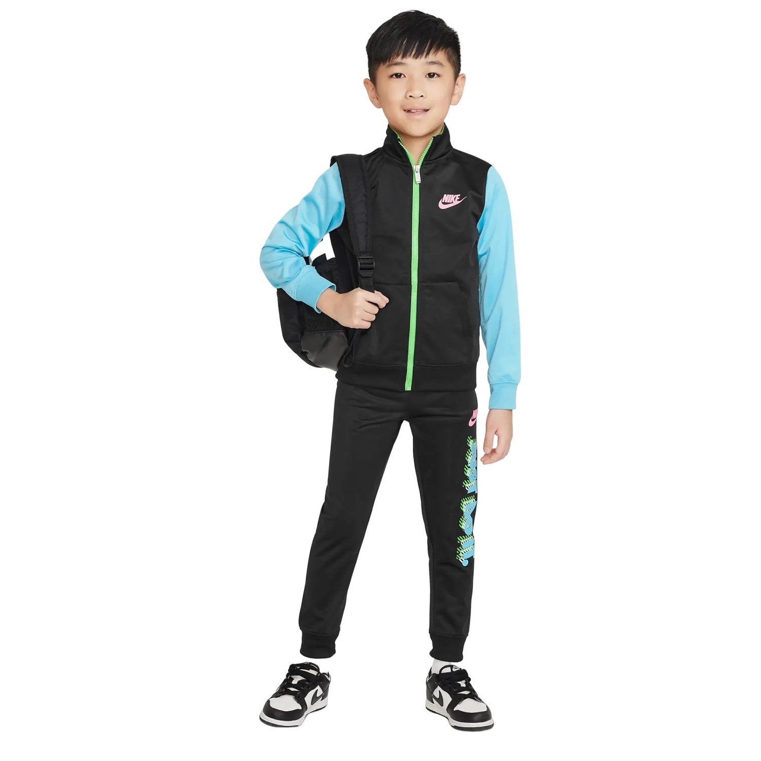 The Nike Active Joy Tricot kids' tracksuit set is a versatile and stylish 2-piece combo that's perfect for your little athlete.