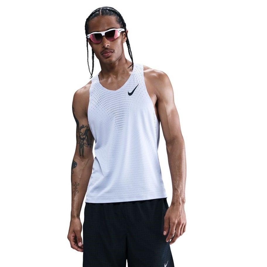 The Nike Aeroswift Dri-Fit ADV men’s running singlet lets you soar into a snappy rhythm on race day with a lightweight design and sweat-wicking power.