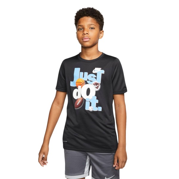 Sporty style for his sweat sessions, the Nike Dri-Fit JDI boys’ sports t-shirt keeps him looking the part as he tunes up his catching and passing skills.