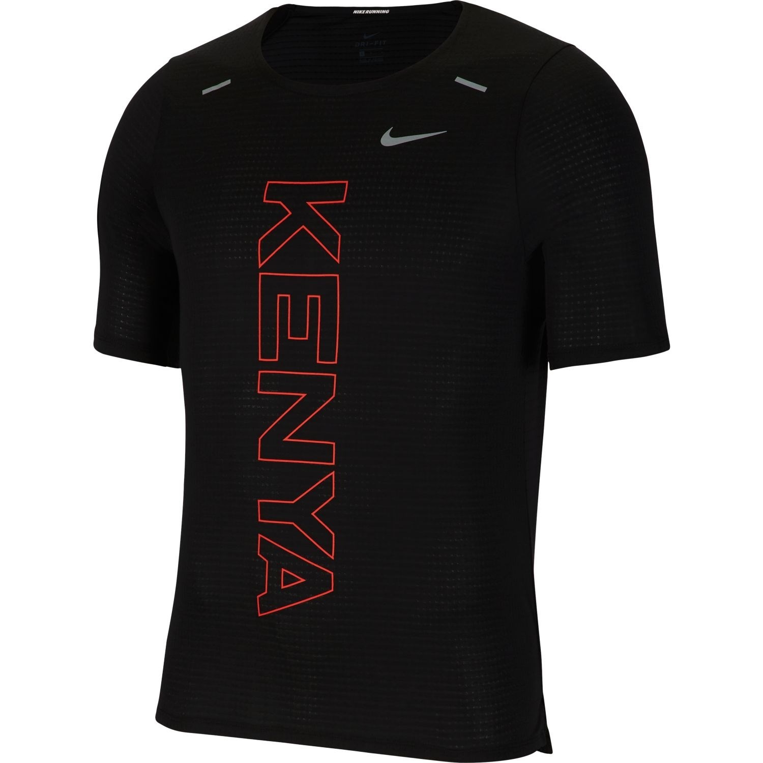 The Nike Dri-Fit Team Kenya Rise 365 men's running t-shirt is made of lightweight, breathable fabric with moisture-wicking properties.
