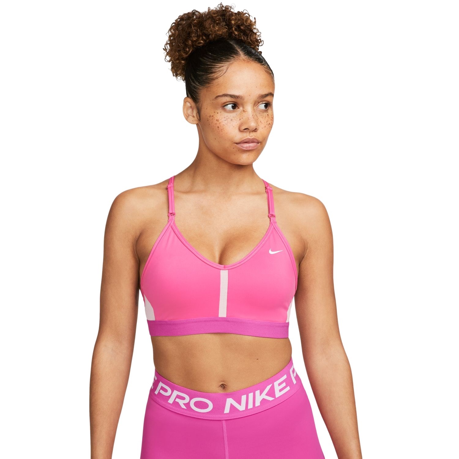 The Nike Light Support Padded V Neck women’s sports bra has a workout-crushing attitude with its flattering, supportive fit and adjustable straps.