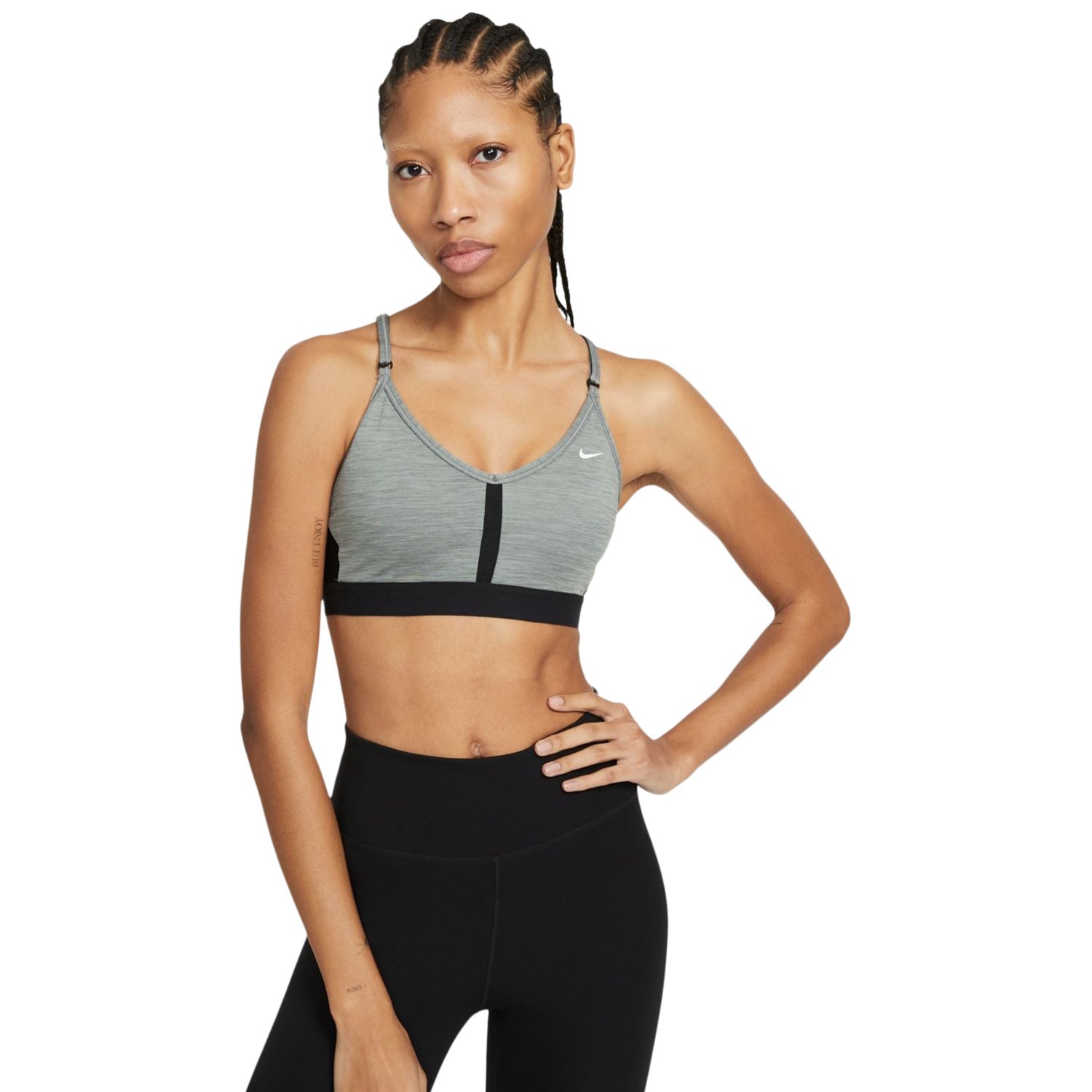 The Nike Light Support Padded V Neck women’s sports bra has a workout-crushing attitude with its flattering, supportive fit and adjustable straps.