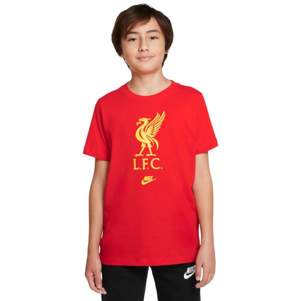 The Nike Liverpool FC Futura kids’ soccer t-shirt ensures there’s no doubt of your little athlete's team colours, with the vibrant red and gold combination that shouts out “Liverpool” without having to say a word.