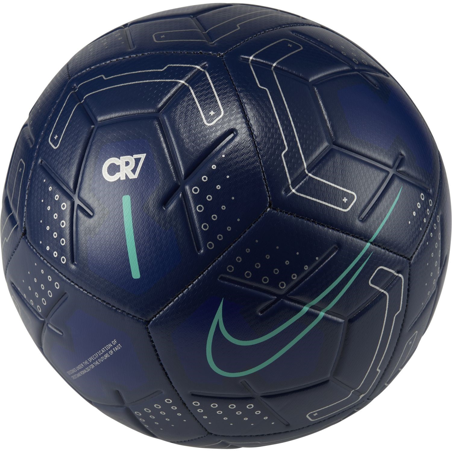 Channel inspiration from pro player Cristiano Ronaldo with the Nike Strike CR7 soccer ball, featuring high-contrast graphics for easy tracking.