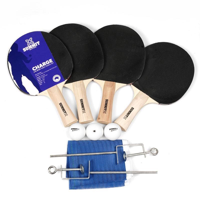 You get 4 Charge table tennis bats, 3 balls and the standard net and posts for casual play and training up your skills.