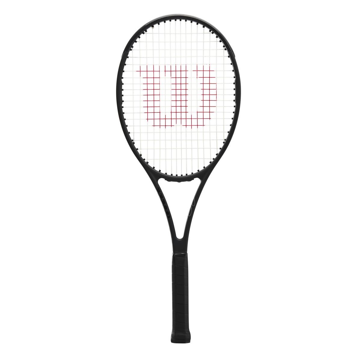 • Modern design elements meet classic Pro Staff with gloss finish high up on the racquet head beyond 3 and 9 o’clock, visible carbon fibre weave and black elastic base