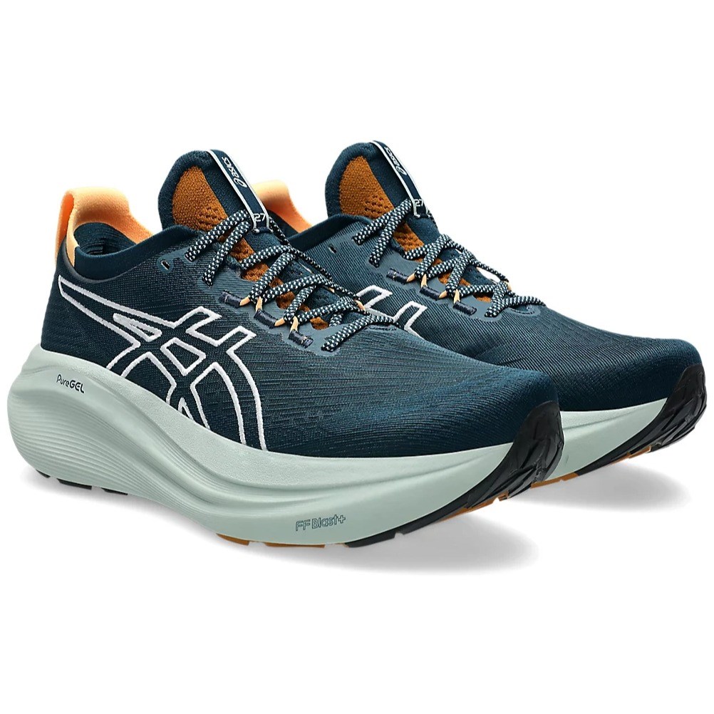 The ASICS Gel-Nimbus 27 TR brings the signature plush comfort of the Nimbus 27 to light trails and varied terrain. With an extra 2mm of stack height while maintaining a similar weight to the Nimbus 26, it delivers soft, responsive cushioning through a full-length FF BLAST™ PLUS ECO midsole and shock-absorbing PureGEL™ technology.