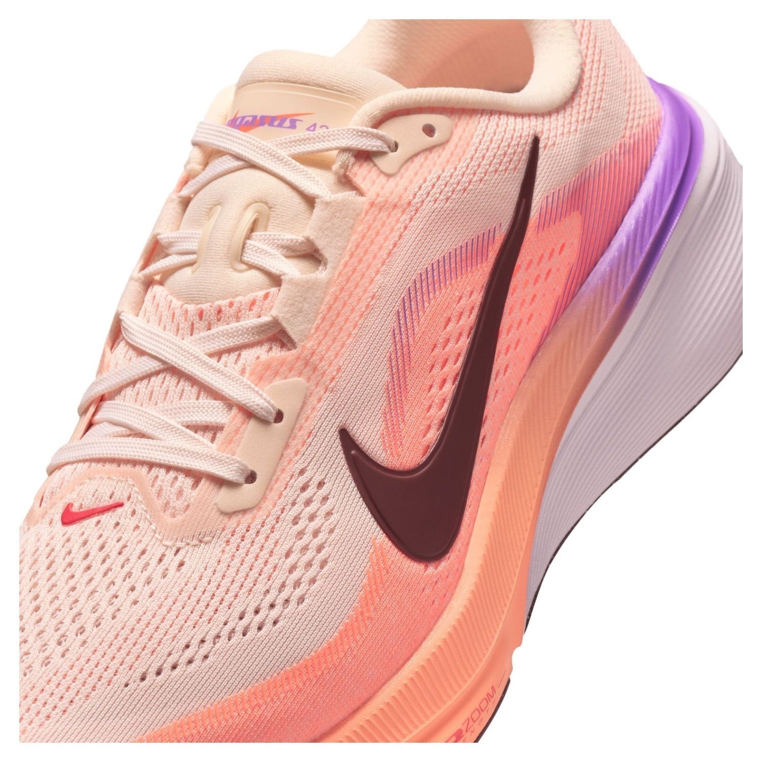 A full-length Air Zoom unit delivers a propulsive feel from heel to toe-off, working with ReactX foam for a softer yet more responsive ride. The updated fit provides extra room through the forefoot and toe box, while a breathable mesh upper enhances comfort across longer runs. Finished with a durable waffle outsole, the Pegasus 42 offers reliable traction and flexibility on the road.
