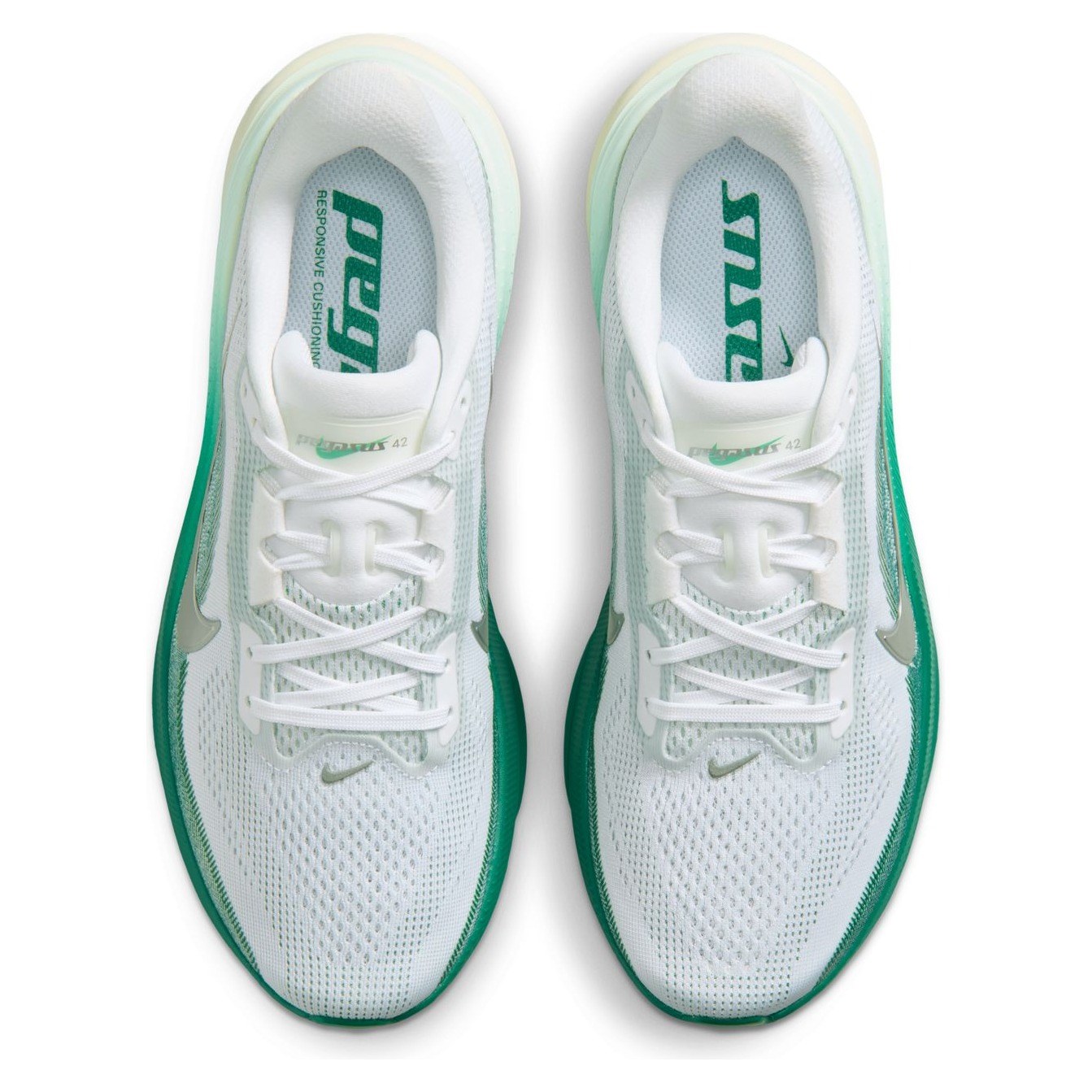 A full-length Air Zoom unit delivers a propulsive feel from heel to toe-off, working with ReactX foam for a softer yet more responsive ride. The updated fit provides extra room through the forefoot and toe box, while a breathable mesh upper enhances comfort across longer runs. Finished with a durable waffle outsole, the Pegasus 42 offers reliable traction and flexibility on the road.