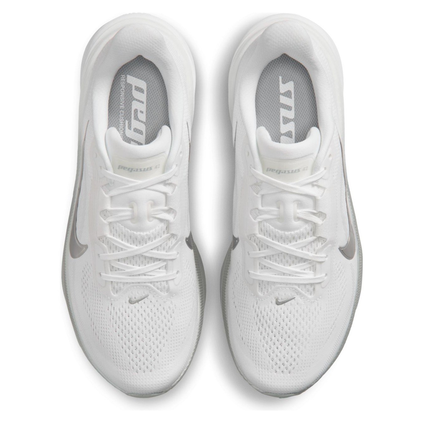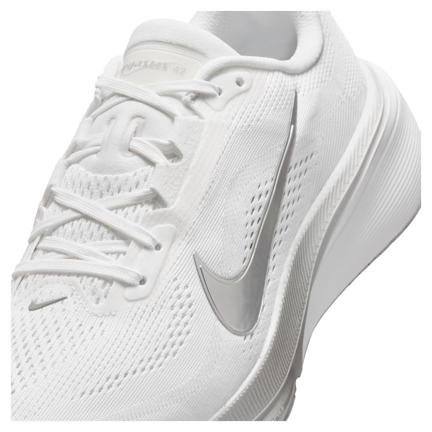 A full-length Air Zoom unit delivers a propulsive feel from heel to toe-off, working with ReactX foam for a softer yet more responsive ride. The updated fit provides extra room through the forefoot and toe box, while a breathable mesh upper enhances comfort across longer runs. Finished with a durable waffle outsole, the Pegasus 42 offers reliable traction and flexibility on the road.