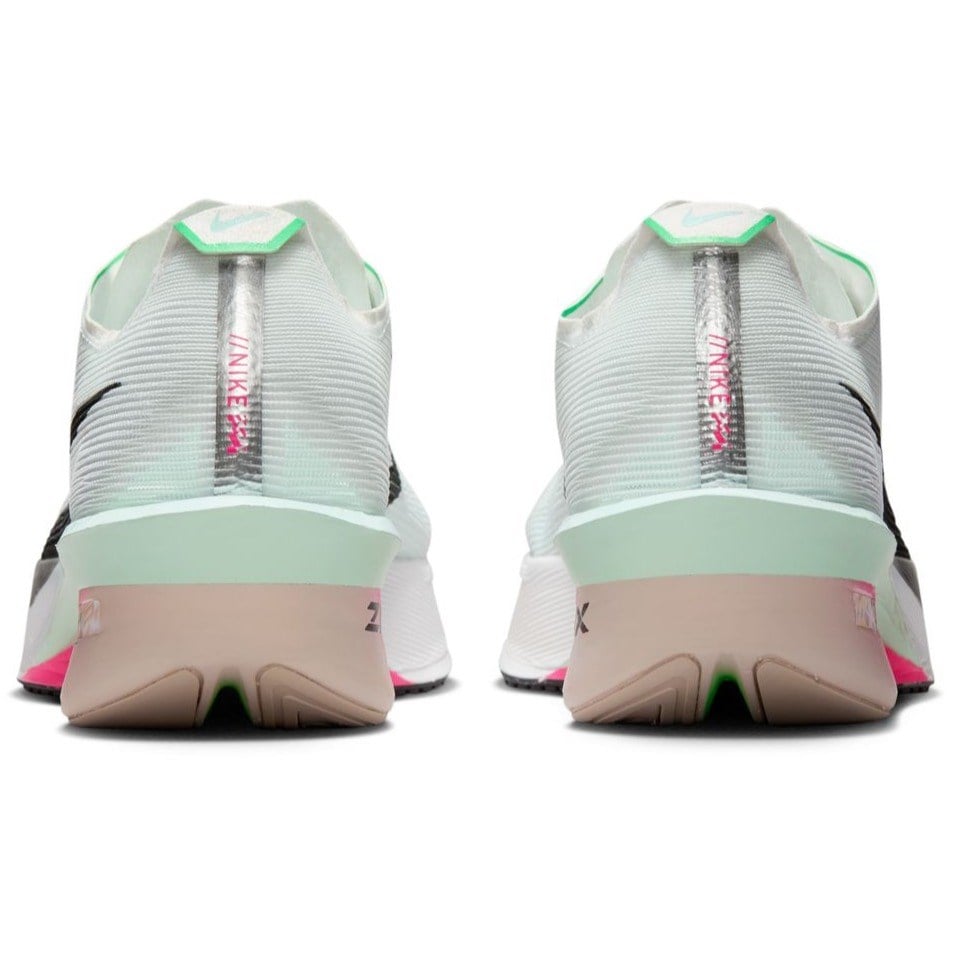 Featuring an upgraded ZoomX midsole, now with a slightly lower stack height for better ground feel and a steeper carbon fibre Flyplate, the Vaporfly 4 delivers enhanced energy return and snappy responsiveness. The engineered mesh upper is feather-light and breathable, with strategic weight reductions at the heel and tongue for a barely there feel.